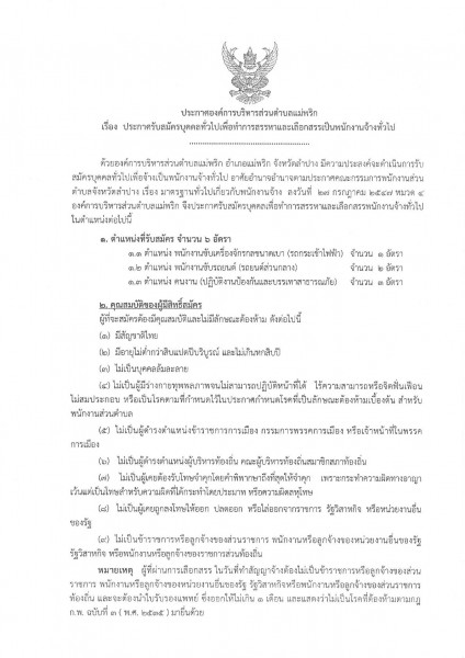 ประกาศรับสมัครบุคคลทั่วไปเพื่อทำการสรรหาและเลือกสรรเป็นพนักงานจ้างทั่วไป